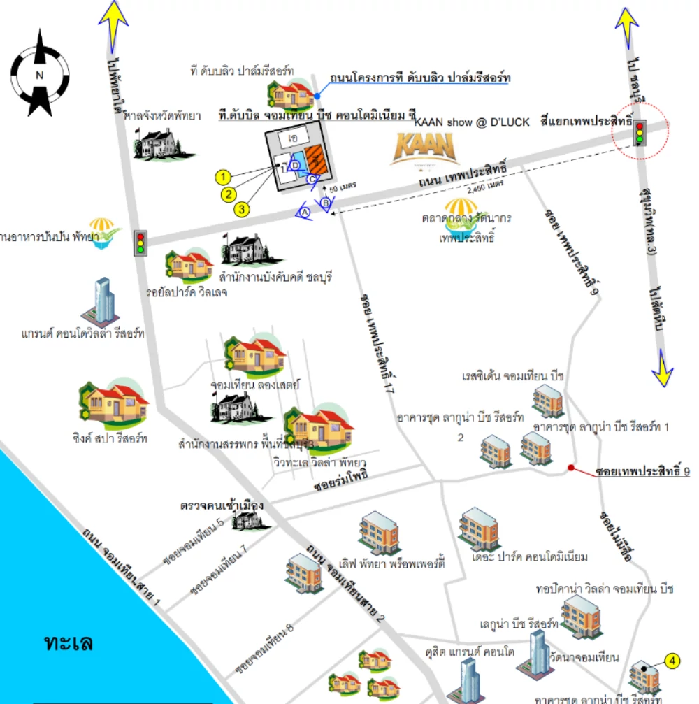Convenient travel from Sukhumvit Road, turn into Thepprasit Road, approximately 2.5 km to the project location, or from Thappraya Road, 550 m to the project location.